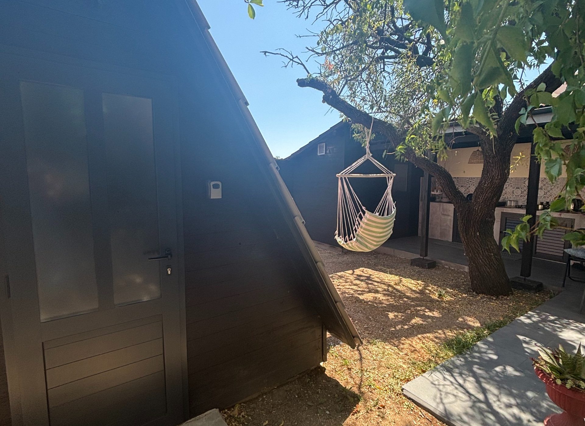 Outside, the holiday house features a private terrace and garden area, ideal for family meals or evening gatherings under the stars. Surrounded by lush greenery and the sounds of nature, it’s a serene retreat where relaxation comes naturally.